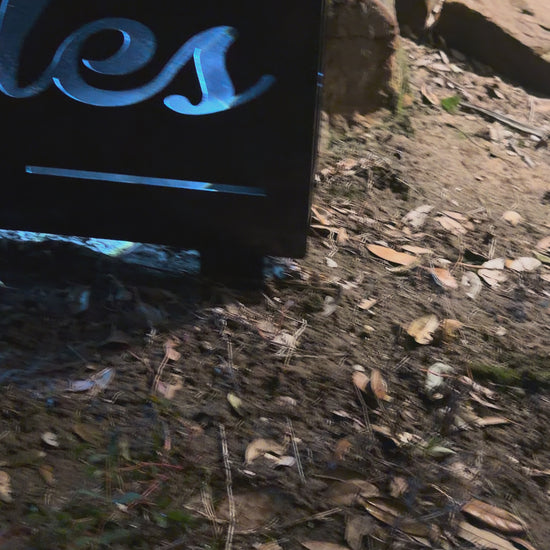 Custom Steel Lighted Address Sign – 36” x 12.5” – Gloss Black Finish with LED Solar Lights Make a bold statement at your driveway, entryway, or business with this custom steel lighted address sign — designed, cut, and built by Triple B Steel in the USA. Each sign is plasma-cut from solid steel and welded for strength, featuring a clean, modern box design that reflects light beautifully.